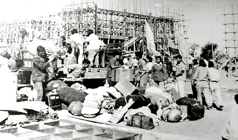 1969年10月,北京石油学院搬迁誓师大会迁校后,教职工开始自己动手建设校园