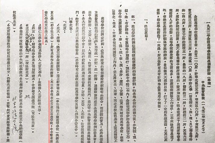 1952年5月17日,中央教育部制定的《全国高等学校院系调整计划(草案)》中指出:1953年准备在北京成立石油学院,1952年暂在清华大学成立石油工程系。