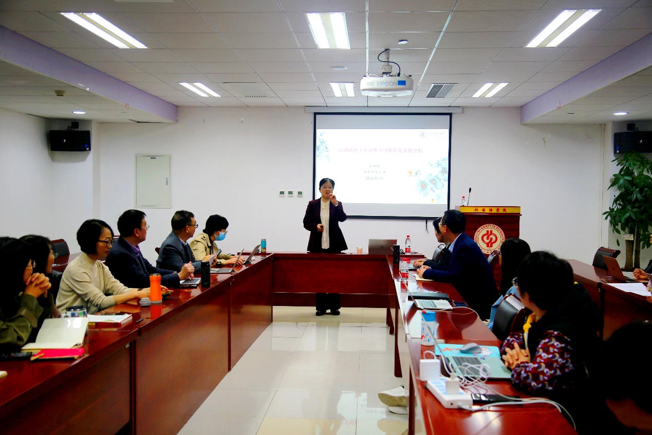 10月31日,华中科技大学徐锦芬教授受邀“技术赋能时代外语教育创新研究案例分析”为题作外语教学与研究工作系列坊讲座第二讲,外语学院副院长逯义峰主持讲座,学院全体教师参加讲座
