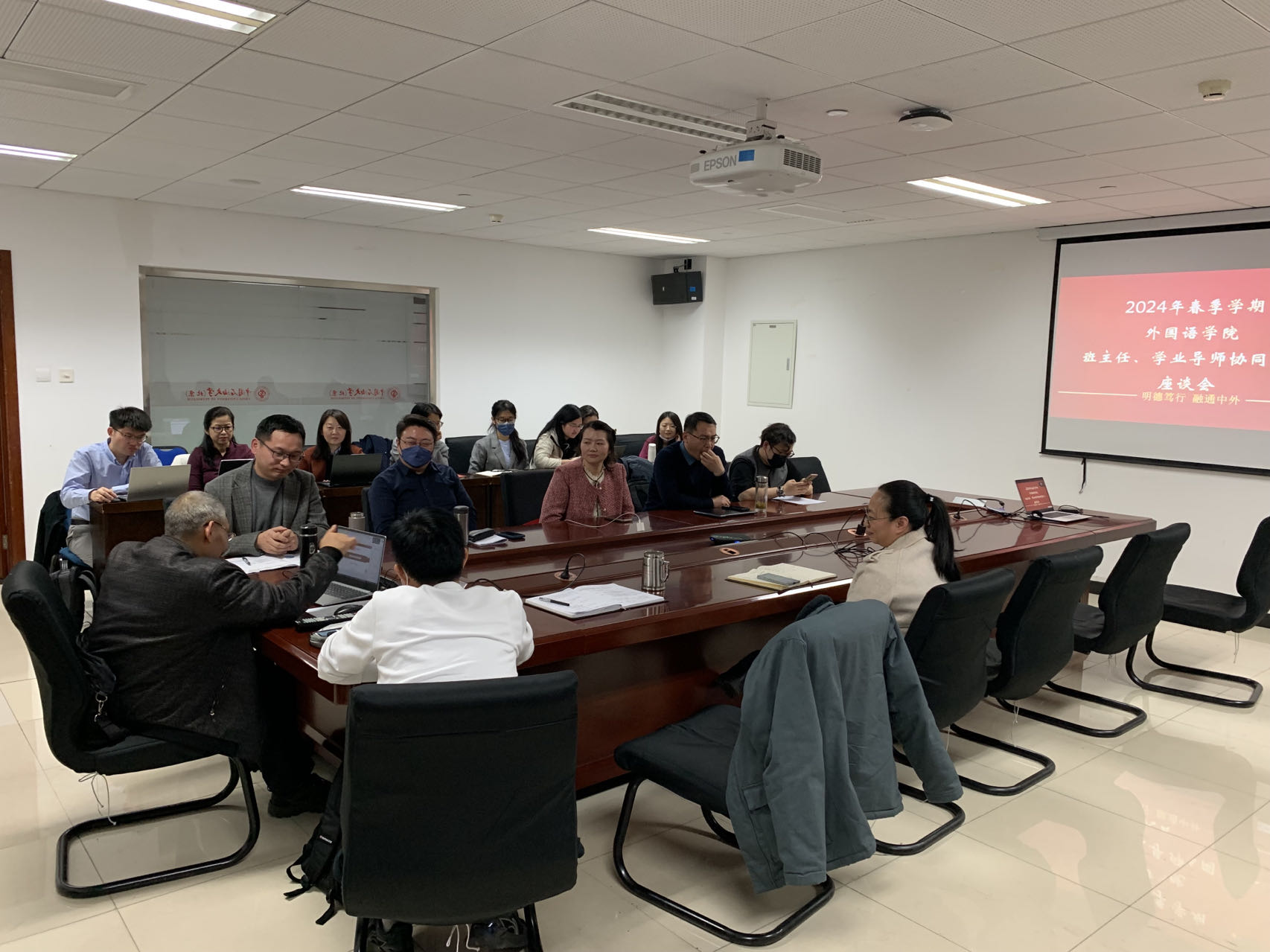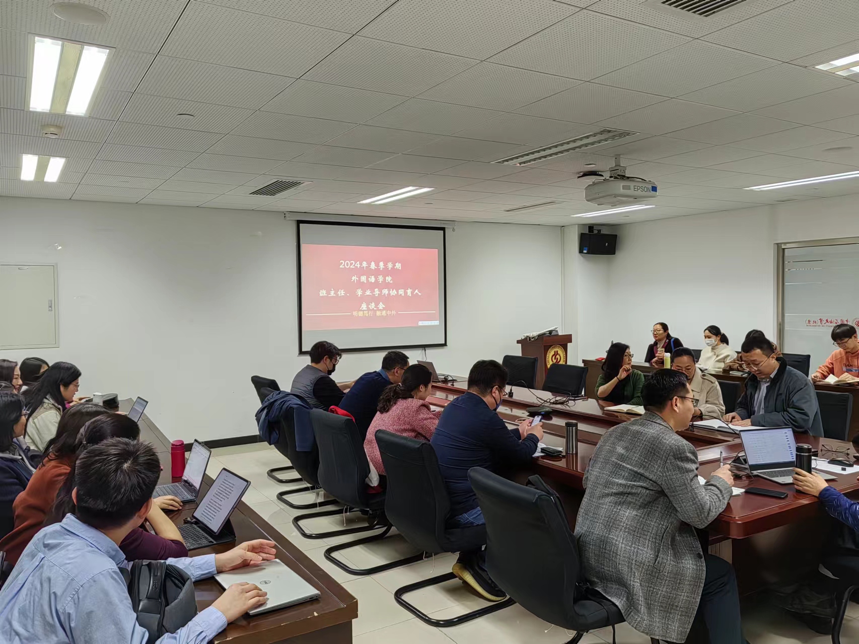 3月14日,外国语学院召开2024年春季学期班主任、学业导师专题工作会议,本科教学副院长逯义峰、学院党委副书记刘春阳、全体班主任、学业导师和本科生辅导员参加会议。