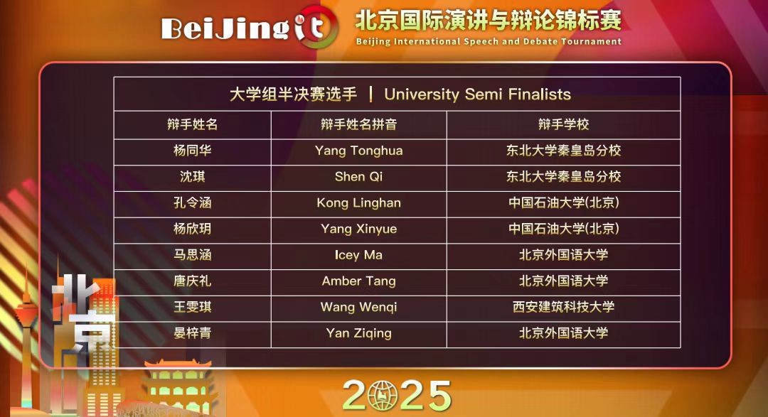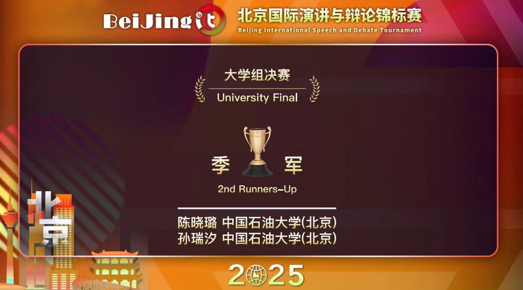 2月22日、23日,由外语教学与研究出版社与思辨菁英计划(Great Debater Project, GDP)联合主办的2025北京国际辩论锦标赛(Beijing IT)在北京外国语大学举行。beat365在线唯一官网(北京)选派2支精英队伍参赛并获奖。