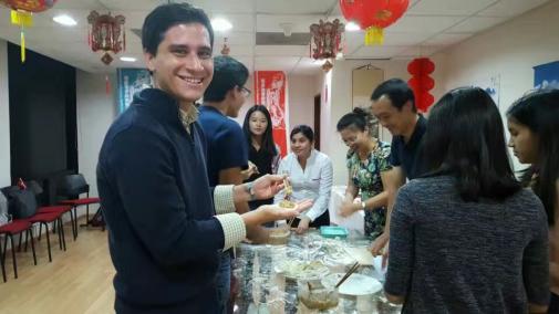 此番情景,不仅是一场美食制作的体验,更是一次跨越国界的文化交流,一次心灵的触碰与共鸣。在董静萍的引领下,孔子学院的师生们共同编织了一个爱与协同的温馨文化故事,让这份来自东方的节日温情,在异国他乡绽放出别样的光彩。