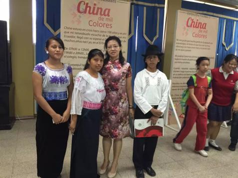 在厄期间,董静萍经常到当地的大、中小学进行中国文化活动或展示,让更多的当地学生和民众接触和了解中国文化。印象比较深刻的一次活动是应在厄中企和当地一所学校的邀请去比较偏远地区Zamora省的实地考察,坐了一个多小时飞机后又颠簸数小时到了一所有意愿开中文课的学校Unidad Educativa del Milenio Arutam,她在跟学校孩子们的交流过程中体会到了他们对汉语和中国文化的渴望。那些孩子们,眼眸清澈如水晶葡萄,满含渴望地凝视着她,嘴角挂着甜美的微笑,尤为动人。董静萍轻牵小手,与之零距离心灵对话。孩子们对学习中文及中国文化的热忱,深深触动了她的心弦。真情流露之间,即使言语不通,心与心的触碰依旧温暖无间。“因此,我深感自己必须倾尽全力教导他们,我与这些孩子是亲密无间的伙伴。”“只要怀揣爱心,真情自然流露,即便生活方式与文化背景迥异,人与人之间的温情依然可感可知。”她渴望与当地孩童并肩同行,共探知识的浩瀚海洋,以中华文明之深厚底蕴,点亮他们心中的憧憬之光。这不仅是知识的交融,更是心灵的触碰与融合,使彼此在文化的碰撞中绽放出璀璨夺目的火花。