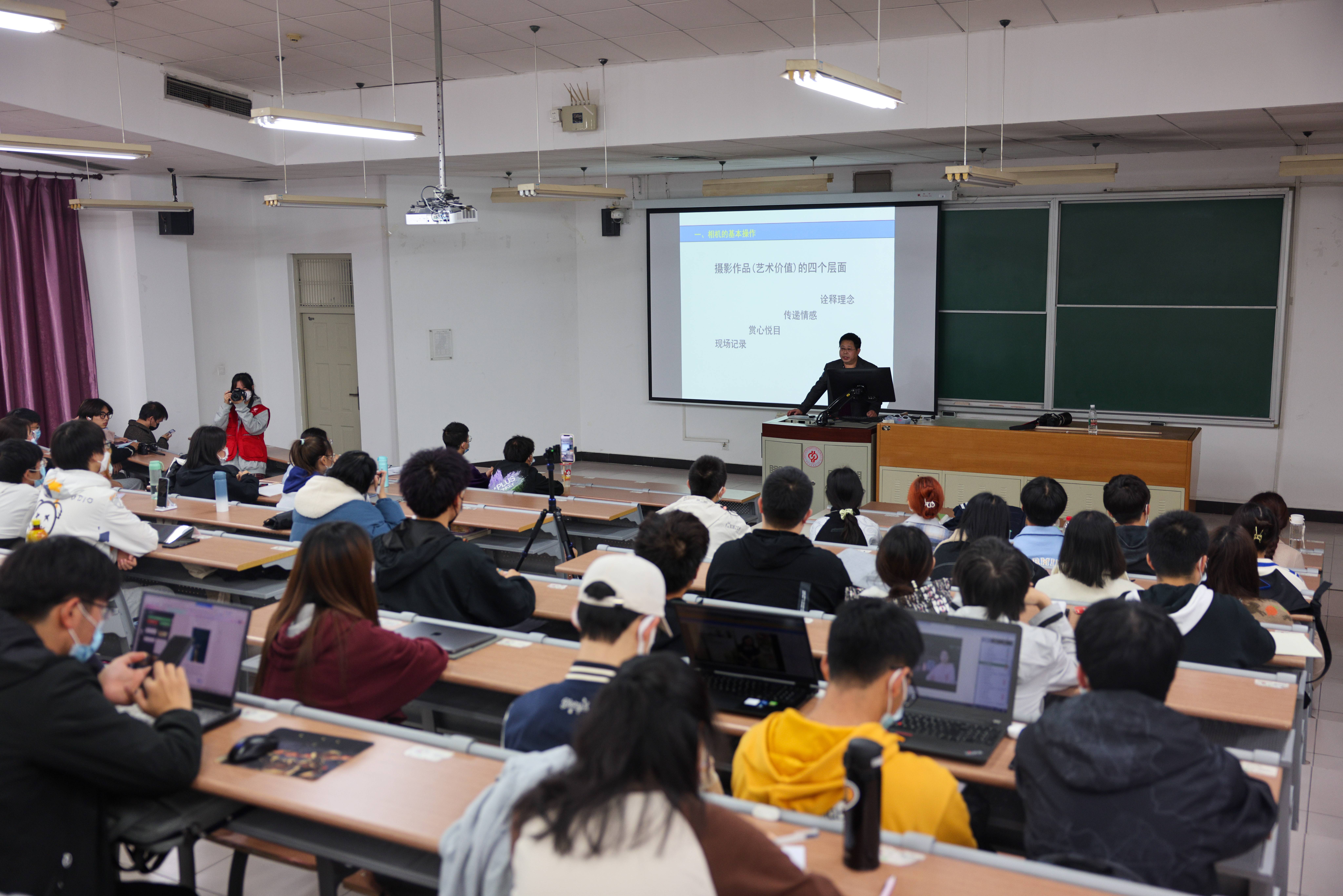 党委宣传部李学峰、徐云飞作了经验分享。李学峰围绕相机的基本操作、景别与构图及会议与活动类摄影三个方面,介绍了如何根据拍照主体选择光圈、感光度、快门速度等参数,分享了拍出好照片的基本原则。徐云飞以“Ps基础与平面设计”为题作了交流。他从版面构图、字体设计、图片排版及色彩理论四个方面,并结合多个实例及个人作品,讲解了“点”、“线、“面”在平面设计中的应用,分享了平面设计中的经验与技巧。