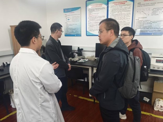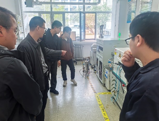 交流讨论后,辽河油田专家团队参观了我院储层改造、在线核磁共振等核心科研设施。实验室负责人杨凯详细介绍了自主研发的各项设备的技术优势及在油田现场的转化成效。专家团队对我院实验技术的先进性、数据的精准性及科研成果的实用性给予高度评价。