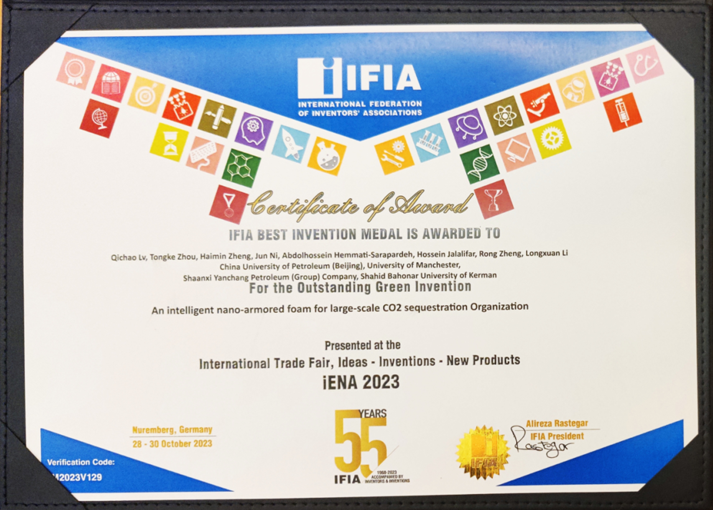 中石大牵头完成的科研成果荣获国际发明者协会联合会最佳发明奖等2项国际奖励