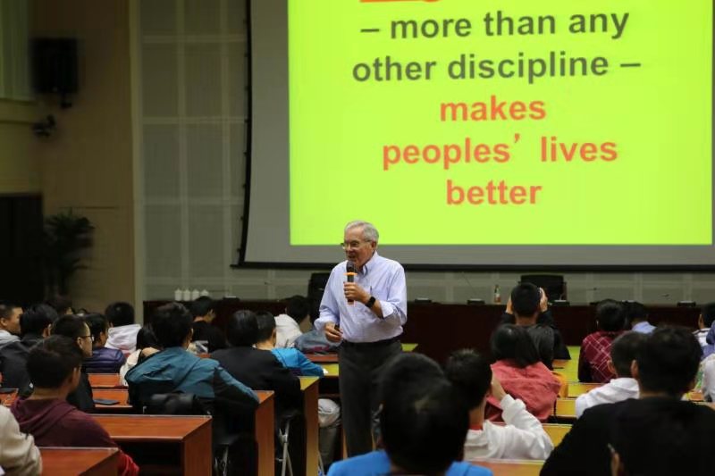 报告在Dr David院士与同学们的互动交流中拉开序幕,Dr David院士比较了科学研究与工程研究之间的不同,阐述了不同国家工程研究特点之间的差异,论述了学术界和工业界之间的距离以及对应的能力需求,特别提出了“科学重要的是发现,工程在于创造”的观点。此外,Dr David院士对广大在校大学生提出了建议,研究学术应从兴趣出发,可以个人去做,但工业界需要的是团队,更加注重配合,创造价值才是目标。Dr David院士诙谐幽默,会场笑声、掌声不断,在欢乐的气氛中,结束了本次报告。