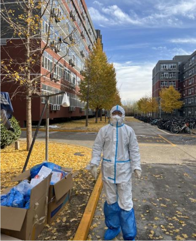 东校园封闭管理以来,地球物理学院青年教师陈涛投身于教师志愿者的队伍中,一直驻守学生宿舍,负责汇才公寓6号楼日常的配送。