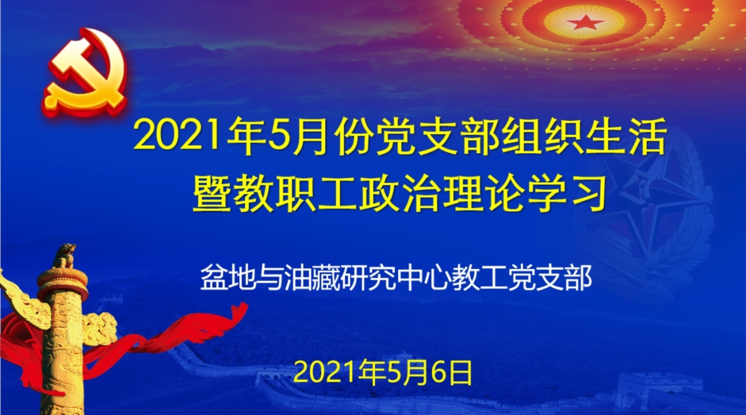 2021年5月6日下午,地球科学学院盆地与油藏研究中心教工党支部以腾讯会议方式召开线上组织生活暨教职工政治理论学习,支部34名党员参加了会议。