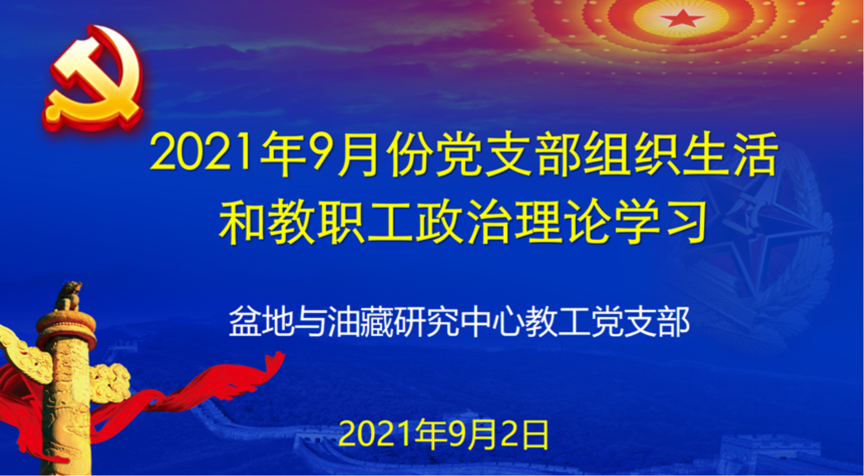 2021年9月2日下午,地球科学学院盆地与油藏研究中心教工党支部在地质楼721党员活动室召开组织生活暨教职工政治理论学习,支部30名党员和7名群众参加了学习,会议由刘小平同志主持。