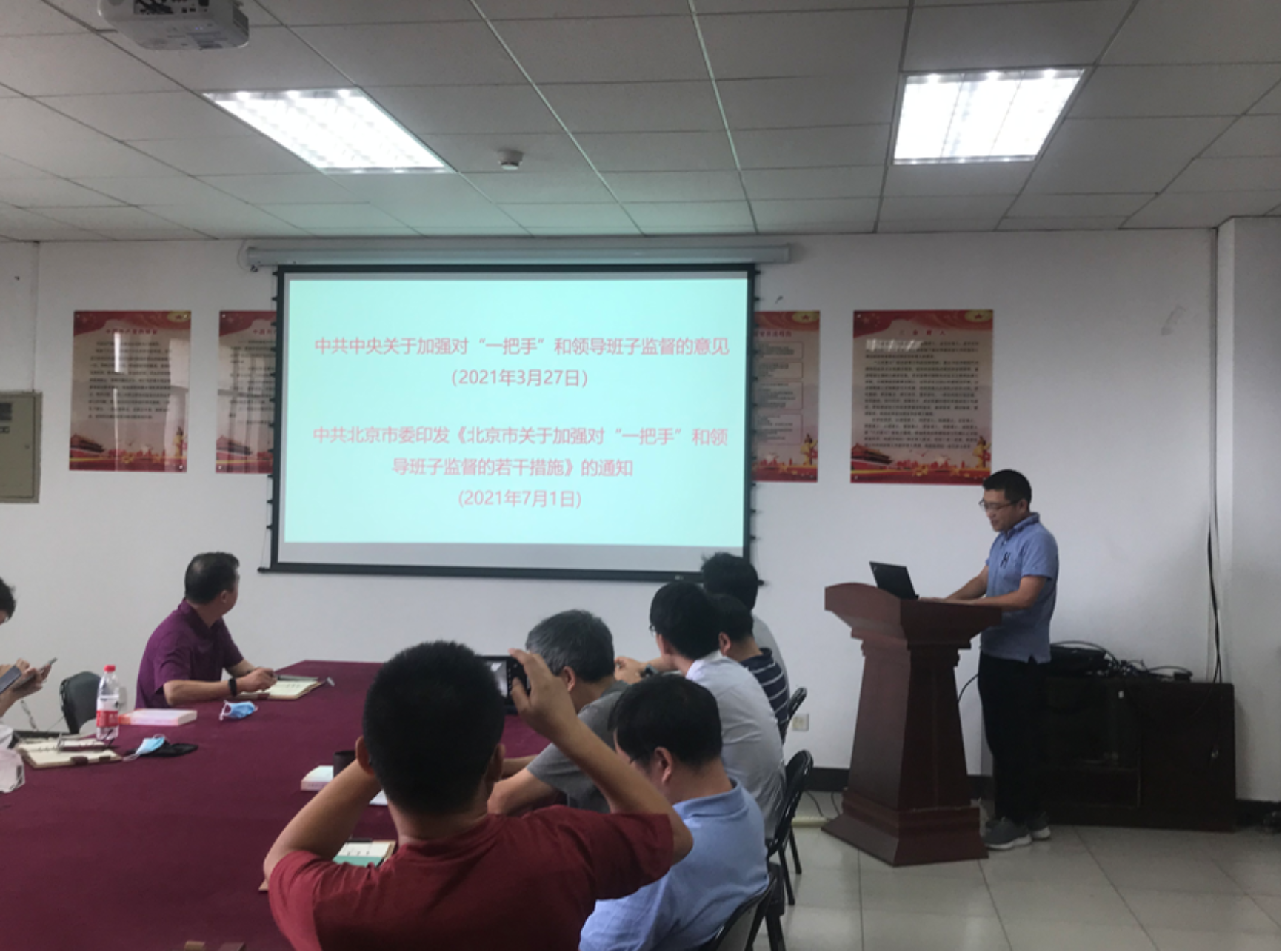 会议分为两个阶段。第一阶段,支部书记刘小平介绍了9月份学习要点,强调了学习“习近平同志关于把握新发展阶段、贯彻新发展理念、构建新发展格局的重要是论述”的必要性。学习分为三个部分,首先,钟宁宁重点领学了“习近平总书记2021年1月11日在省部级主要领导干部学习贯彻党的十九届五中全会精神专题研讨班上的讲话”,深入浅出地给出了自身的理解;其次,肖洪博士后对“习近平同志《论把握新发展阶段、贯彻新发展理念、构建新发展格局》的主要篇目”展开了重点介绍;随后,围绕“《总结党的历史经验,加强党的政治建设》”与《中共中央关于加强对“一把手”和领导班子监督的意见》、《北京市关于加强对“一把手”和领导班子监督的若干措施》”,余一欣和朱传庆分别领学了跟进学习内容。第二阶段,刘小平主持为师生宝、张剑锋、张晨3名党员过政治生日,并赠送了政治生日贺卡及生日礼物,最后,所有党员重温了入党誓词,进一步强化了政治仪式感。