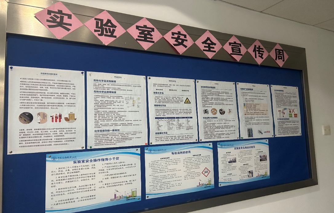 5月13-19日,在地质楼7、8、9、10层楼道宣传公告栏进行实验室安全知识小干货宣传,加强师生对实验室安全、实验室水电气及危化品、危废处置等相关安全知识的关注。