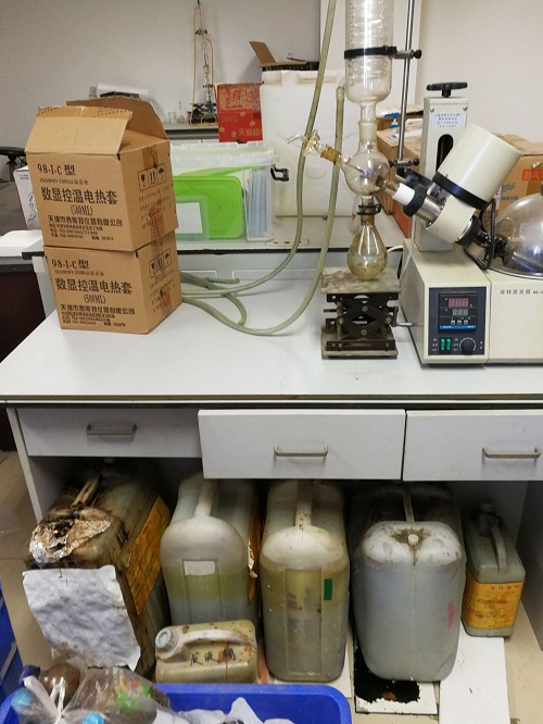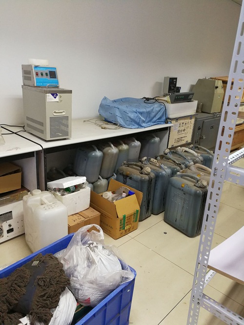 检查中发现,909实验室放置了多桶原油样品以及废液。原油样品属于易燃品,虽然桶口做了密封处理,但是最好购置样品柜进行储存。有的废液桶中的废液过满,不符合规范,希望尽快将废液进行合理处理,尽量不要存放过久,造成安全隐患。921实验室的马弗炉和烘箱的电源使用外接插座电源,不符合安全规范,必须直接使用墙上电源插座。