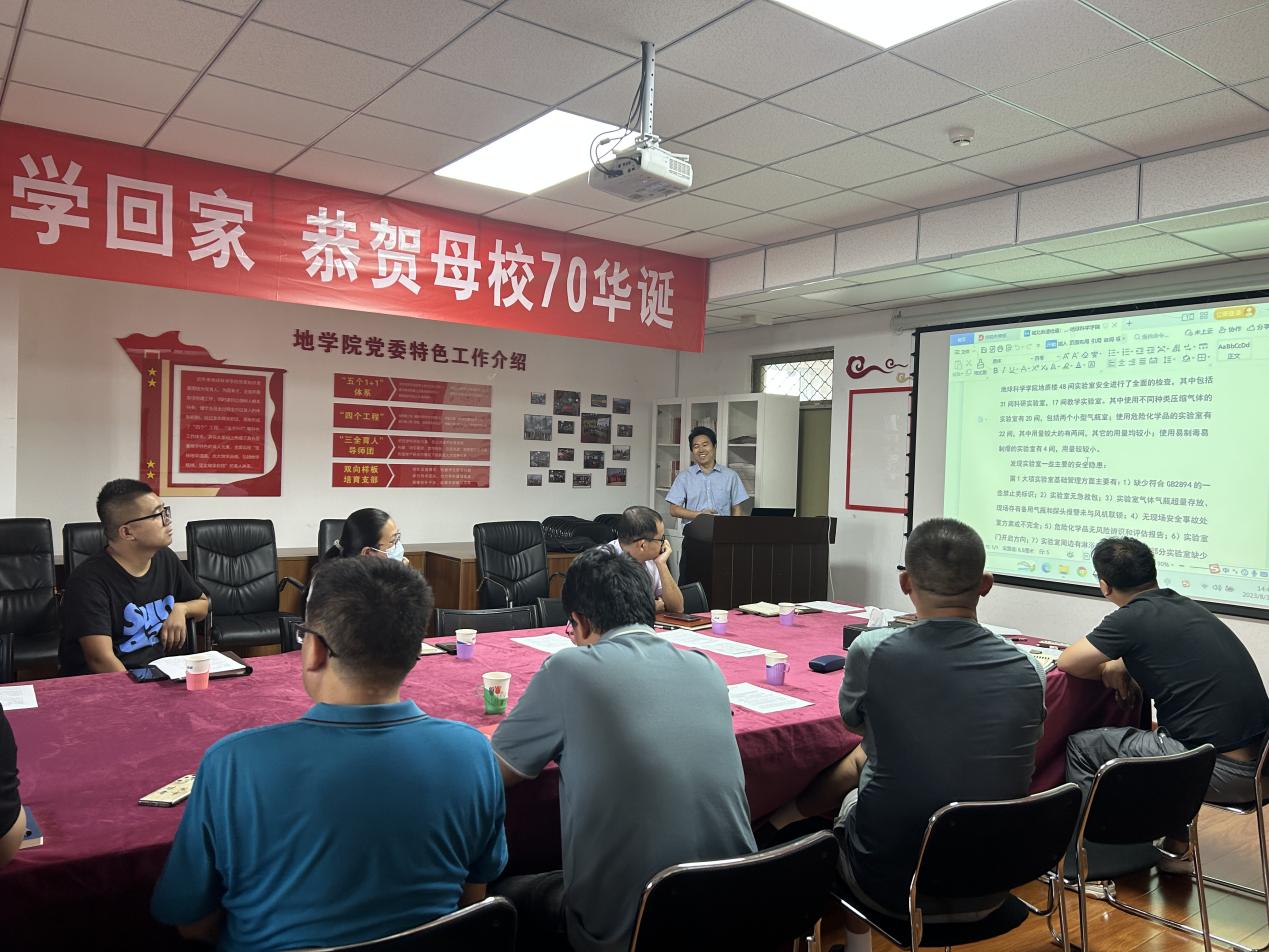 2023年8月31日下午,地球科学学院在地质楼1101会议室召开了实验室安全工作会议,会议由余一欣副院长主持,教学、科研实验室负责人以及实验员共20余人参加了本次会议。