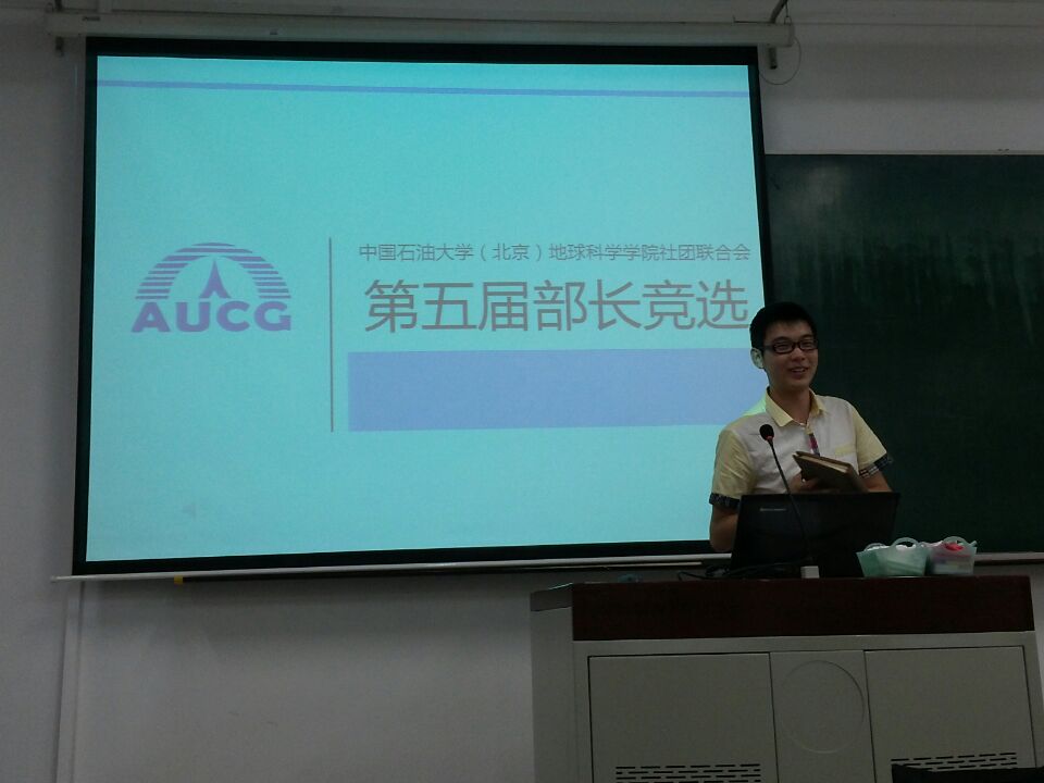 会议伊始,地学院第五届社联主席王子安介绍了社联的六个部门的职责和任务。其中对于新成立的传媒中心这一部门,他系统地做了部门功能介绍和规划,其他部门要进行改革求新,最后他预祝此次选举圆满成功。之后竞选者进行了精彩激烈的竞选演讲。其中原社联学科竞赛部部委王彤竞选传媒中心的部长,其精彩的竞选演讲赢得了会上所有人的一致好评。最后王子安宣布了竞选结果,对于各个部门的近期活动和任务进行了部署。