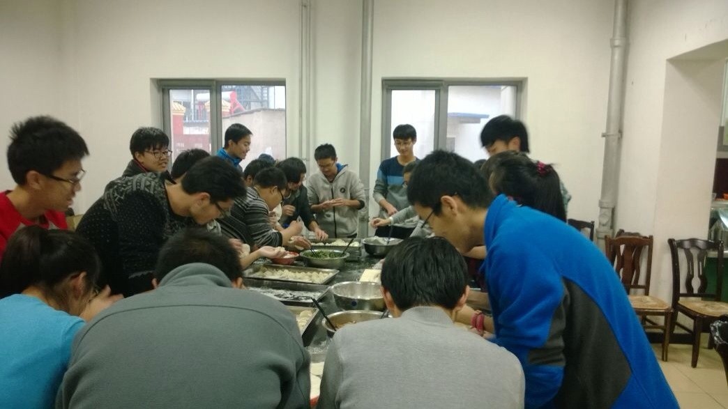 首先,班级同学按地域分成小组讲解自己家乡的过年风俗,同学们积极发言,现场气氛活跃。随后学习委员介绍了春节的来历及新年习俗的渊源。最后全班同学于二餐自己动手包饺子煮饺子,同学们在活动中相互分工,相互合作,现场气氛融洽。