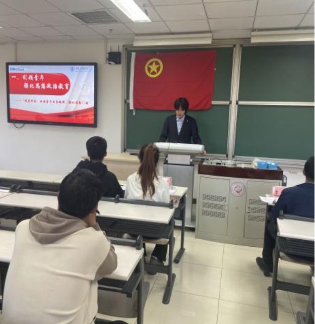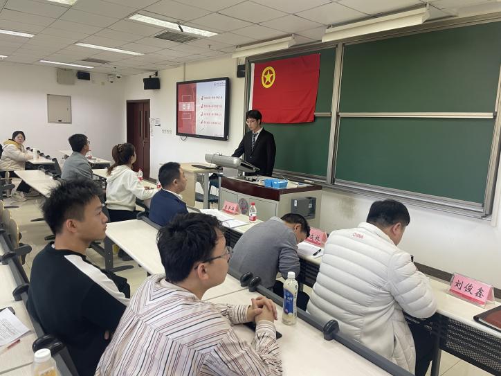 优秀团支部评选答辩开始前,校团委张乐老师进行动员讲话,提到各团支部要紧紧团结凝聚在党中央的周围,发挥好团支部的政治性和青年团干部的表率性。