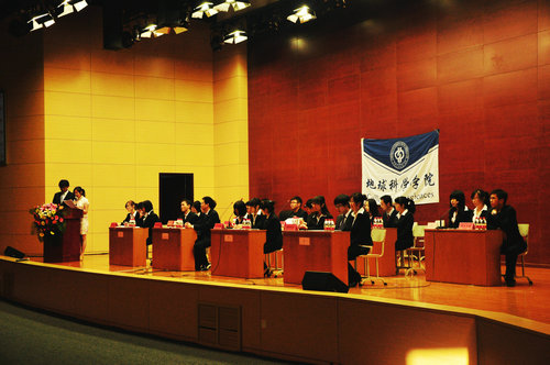 在初赛和半决赛中脱颖而出的9支队伍在决赛进行了最后角逐。比赛分为共同必答题、选择必答题和抢答题三个环节,由专业老师组成的评审团为每支队伍打分,根据各组最后得分评出本届地质技能大赛的综合一等奖、二等奖和三等奖。比赛过程中各组队员全神贯注,比分交替上升,异常激烈。其间还插入了观众互动环节,同学们争先恐后进行抢答,现场气氛十分活跃。