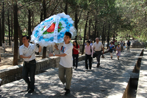 2012年6月16日上午9:00,地球科学学院党员和群众首先向英雄纪念碑敬献了花圈,默哀1分钟后瞻仰了纪念碑。纪念碑四周碑文分别是聂荣臻题写的“光荣烈士永垂不朽”、谢觉哉题写的“永远活在人民心中”、李运昌题写的“为人民革命事业而牺牲的英雄们永垂不朽”、宋劭文题写的“抗日英雄浩气常存”。然后在庄严的英雄纪念碑前,在烈士们的见证下重温了入党誓词,使教师们感受到了自己肩负的重担。然后参观了盘山革命烈士纪念馆,纪念馆内有毛泽东主席的题词和烈士遗像、传略及烈士英名录,还参观了陵园冀东抗日当年在岩石上刻写的标语口号和战场、会场、电台、报社等遗迹。