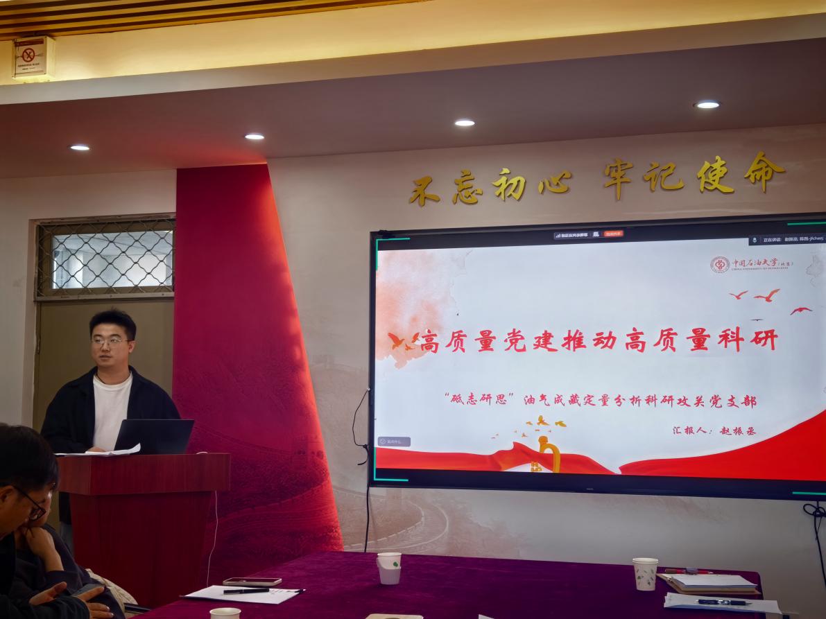 会议由盆地与油藏研究中心教工党支部书记蔡建超主持。刘钰铭书记在致辞中对各共建单位的到来表示欢迎,强调党建引领在推动业务协同中的核心作用。胡涛代表盆地中心党支部介绍了支部基本情况与“六个1+1”工作法,展现支部在思政与业务融合方面的实践成果。期刊社党支部费佳佳就学校主办的四本期刊进行了详细介绍,欢迎校企专家投稿合作,共建学术高地。“砥砺研思”研究生党支部汇报了在党建与科研融合中取得的成果,表达了深入参与企业实践的意愿。