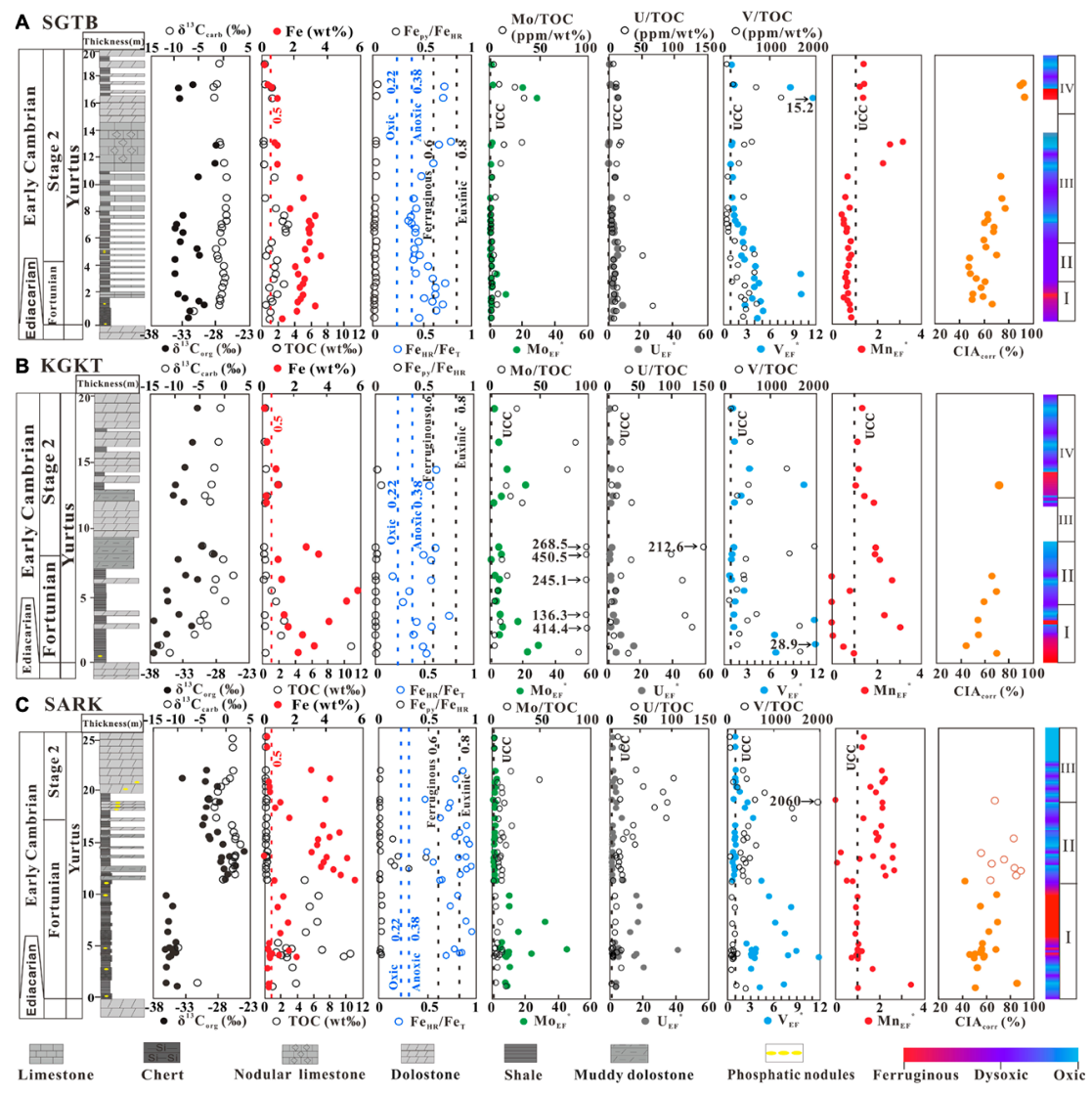 (1)重建寒武纪早期塔里木海洋氧化还原时空演化