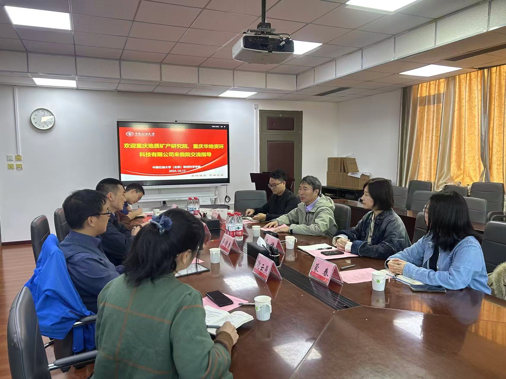 2025年10月17日,重庆地质矿产研究院页岩气分院院长张烨、重庆华地资环科技有限公司党委副书记、纪委书记雷婕一行来我院走访交流,地球科学学院党委书记刘钰铭、副院长罗情勇、牛花朋等在1105会议室进行了接待。会议由地球科学学院副院长罗情勇主持。