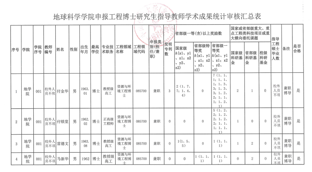 一、审核聘任工程博士研究生指导教师资格意见汇总表申报工博士研究生指导教师学术成果统计审核汇总