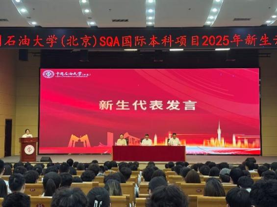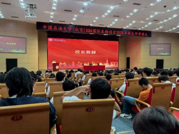 张校长在讲话中向新生表示热烈欢迎,介绍了学校深厚的办学底蕴与国际化成果,并寄语同学们追求卓越、保持好奇、注重实践、培育全球视野、厚植家国情怀,勇担时代使命,在中石大书写无悔青春。