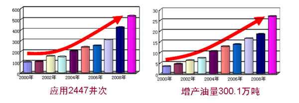 通过发明新方法、新材料,实现了多项技术的原始创新与集成创新,多项单一技术达到国际领先水平,形成的集成技术引领了国内调剖堵水领域技术发展,带动了企业科技进步,增加了企业经济效益,促进了国家经济发展,对控水提高采收率及节水减排有示范意义。研究成果自1993年来在中石油、中石化、中海油三大石油公司的18个主要油田实现规模化应用,推广面达到90%以上,根据部分统计,累计增产原油300余万吨,创直接经济效益69亿元,近3年达到近23亿元,取得显著经济效益。随着油田含水的进一步上升以及大规模聚驱后转后续水驱的进行,本技术的科技推动作用还将更为显著。