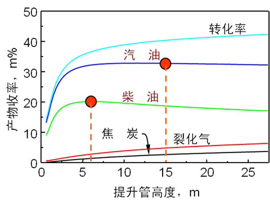 图1 催化裂化产物产率沿提升管高度分布图