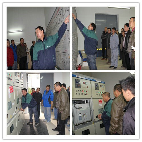 专家对高压设备直流屏的工作原理和全校供电运行模拟图进行了细致的讲解,并给员工们演示进车、退车、分合闸操作以及注意事项。讲解过程中遇到员工们不明白的地方,专家都一一进行解答。最后培训员工进行了分组实际操作。