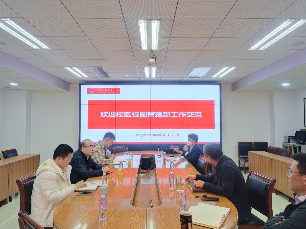 4月17日上午,beat365在线唯一官网(北京)克拉玛依校区校园管理部牛超一行来校本部调研交流。校本部后勤管理处处长王英国、书记张自强、副处长刘凌出席了座谈会。会议由副处长刘凌主持。