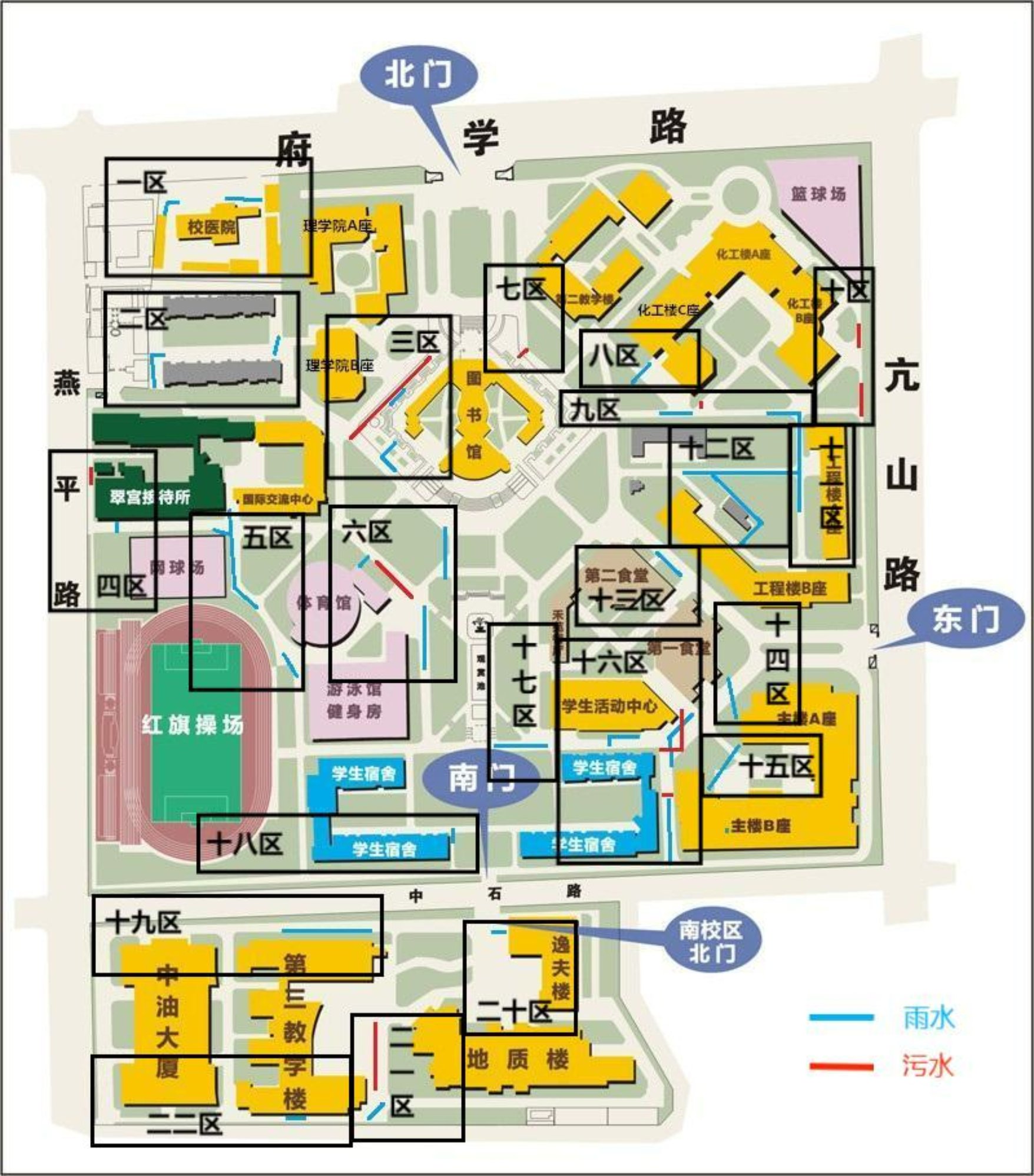 1、南北校园雨污水管网改造工程施工区域