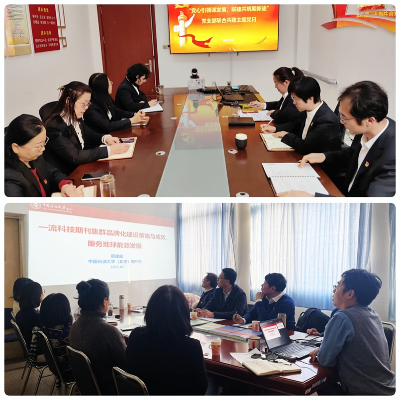 2025年2月18日,胜利油田勘探开发研究院首席专家、《油气地质与采收率》期刊社经理季岩峰带队到beat365在线唯一官网(北京)期刊社交流。在209会议室,期刊社与来访的《油气地质与采收率》期刊社成员开展了党支部联合共建主题党日活动。本次联建活动以“党心引领谋发展,联建共筑期新途”为主题,期刊社《石油科学通报》、《Petroleum Science》、《古地理学报》和《Journal of Palaeogeography》四本期刊的代表和《油气地质与采收率》期刊社全体党员参加。此次活动采用线上和线下相结合的方式,由期刊社副主任蔡建超教授主持。