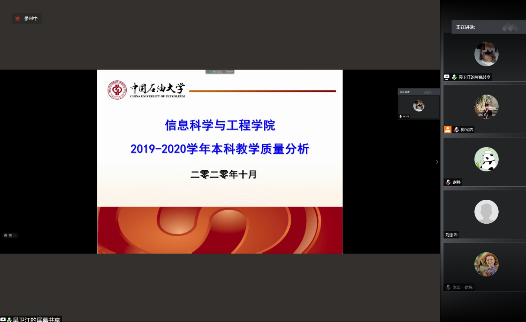 石油工程学院提出了课程建设、人才建设、教材建设三位一体的一流专业建设支撑体系,并从这三个方面阐述了加强教学质量建设的措施。最后经参会教师交流和讨论确定了学院近期在本科导师制、教学团队机制、一流专业建设和课程建设工作、教学考核和激励机制方面的工作思路。