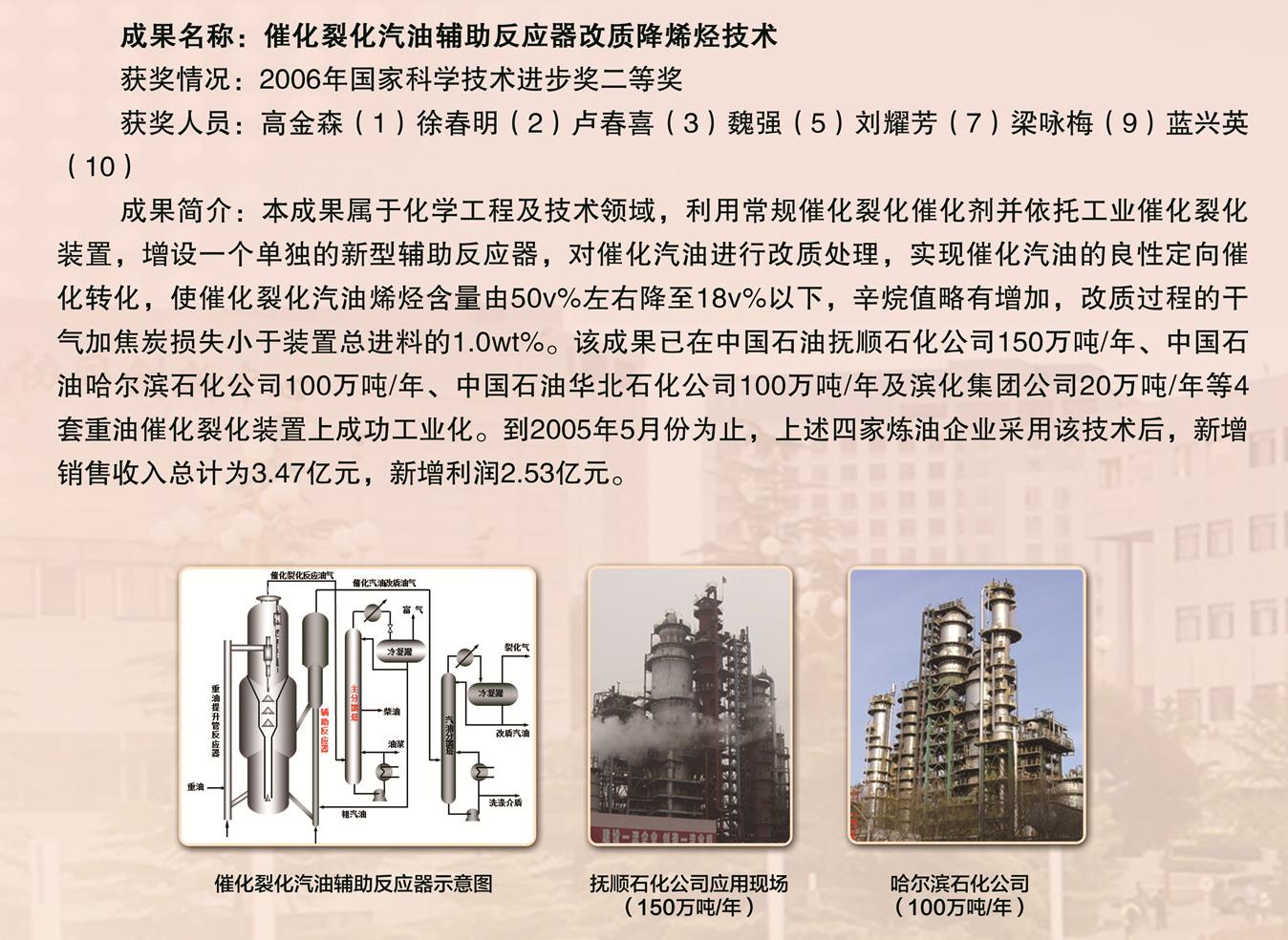 2006年-国家科技进步奖-二等奖-催化裂化汽油辅助反应器改质降烯技术-高金森