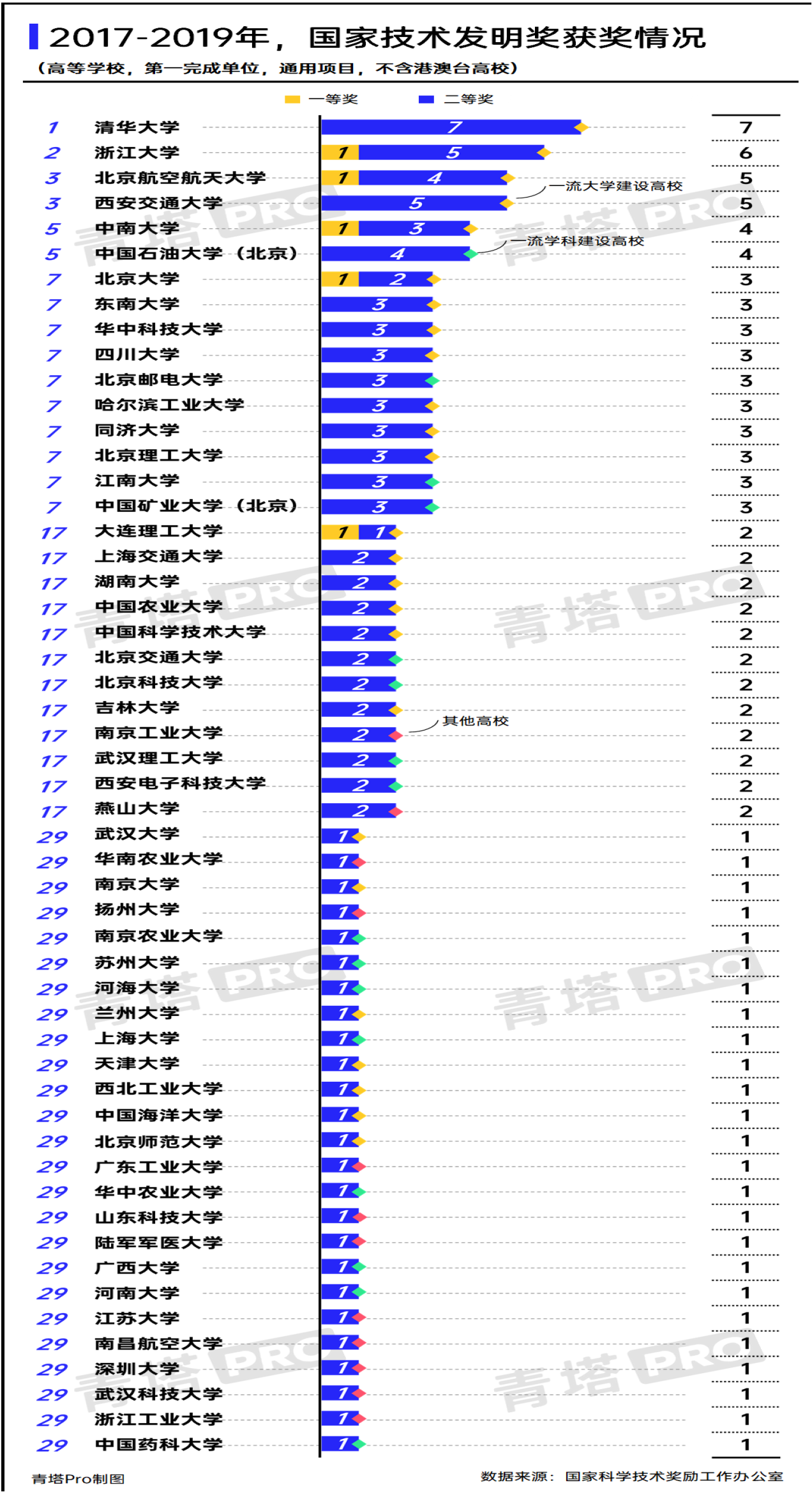 近期,根据国家科学技术奖励工作办公室公布数据,青塔统计了2017年-2019年高等院校(不含港澳台地区)荣获国家科学技术奖的获奖情况,并对数据进行了梳理和分析。beat365在线唯一官网(北京)作为第一完成单位,以三年间斩获4项国家技术发明奖的好成绩,在国家技术发明奖单项榜单中,并列全国高校第五位,在全国一流学科建设高校中,排名第一位。