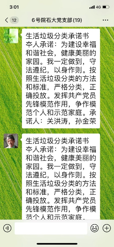 按照离退休党委的要求,离退休石板房6号院党支部于10月16日在支部微信群里部署了10月份组织支部党员开展一次“垃圾分类我践行”主题党日活动。