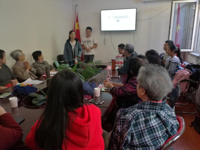为适应信息化时代的飞速发展,享受智能手机带来的生活便捷,离退休工作处本学期继续邀请北京科技大学冶金学院大学生志愿者为我校离退休教职工举办智能手机培训讲座,这是我处在石油大院举行的第三期智能手机培训。10月8日下午,第三期培训正式开班,开班第一讲首先向老同志介绍“5G”,什么是5G,5G将给我们的生活带来什么样的变化等,讲座吸引了10位老同志参加,授课的学生志愿者有7位。