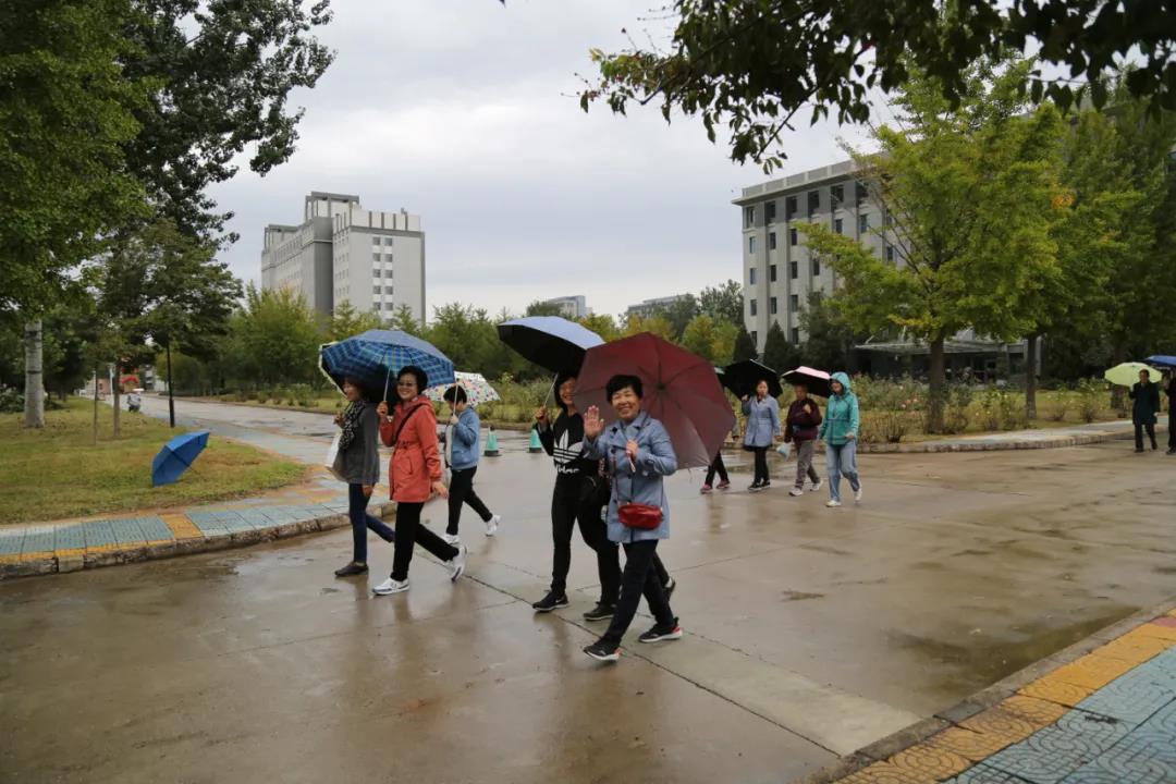 霞披夕阳情无限,霜染秋枫叶正红。微风细雨送秋爽,瓜果梨桃正香甜。10月14日上午,中石大离退休工作处在昌平东校园举办了以“庆建党百年,迎重阳佳节”为主题的健步走活动,一百多名离退休教职工在蒙蒙细雨中参加了本次活动。