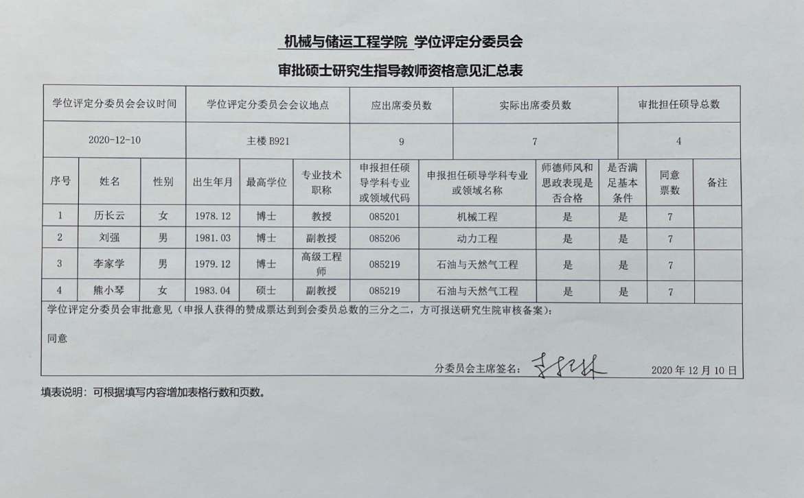 2020年申报硕士研究生指导教师材料公示