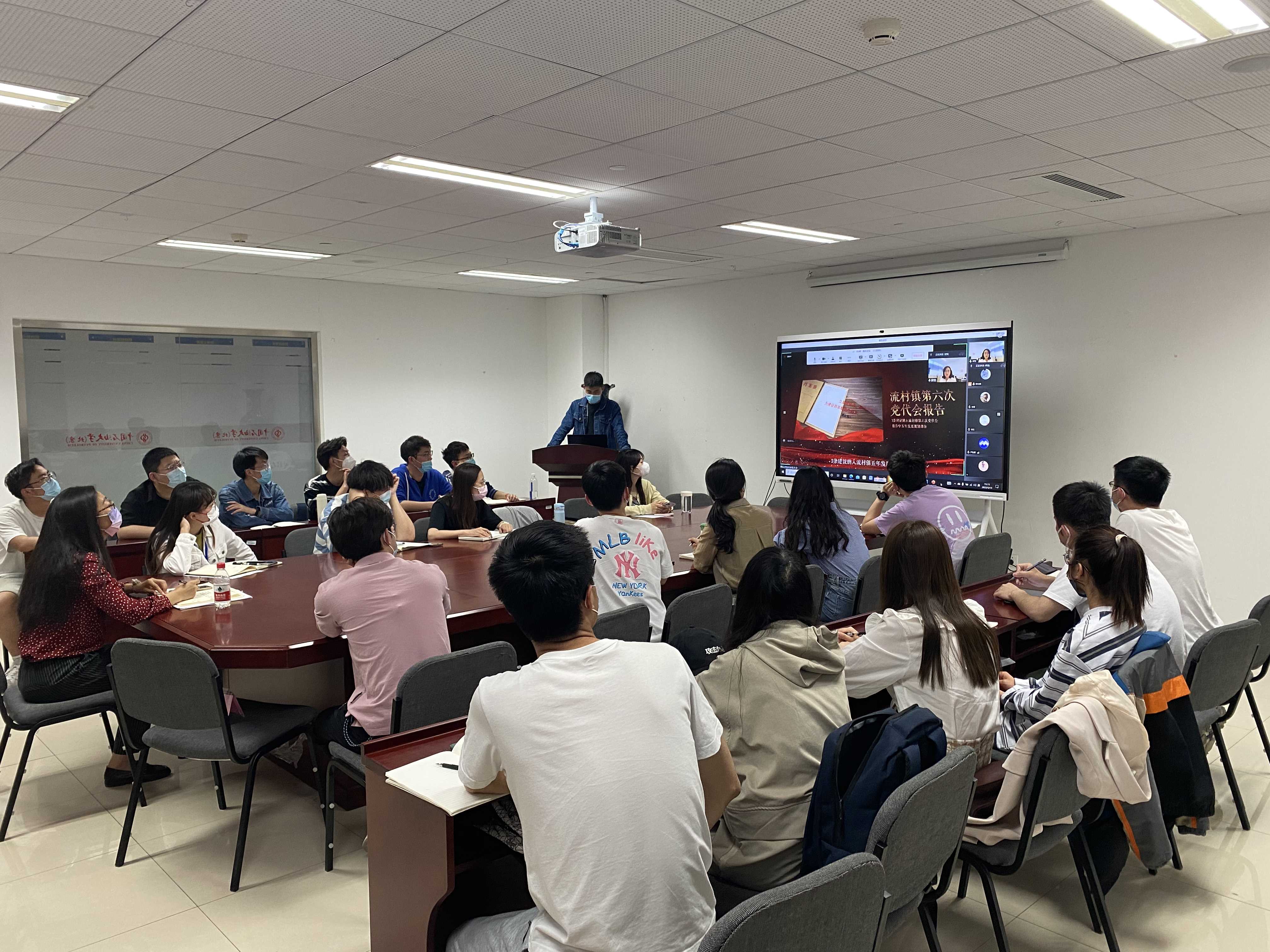 辅导员李健向参会老师和党支部书记介绍了学生党支部的未来发展规划和重点工作,并表达了对成立纵向党支部后党建工作的期待。