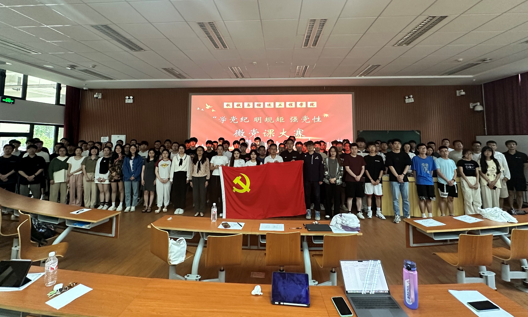 为深入学习贯彻习近平总书记关于党纪学习教育的重要讲话和重要指示精神,推动党纪学习教育走深走实,5月30日下午,机械与储运工程学院举办“学党纪 明规矩 强党性”微党课大赛决赛。学院党委副书记鞠斌杰、团委书记刘晔、相关辅导员担任评委,全体学生党支部书记和各支部党员代表参会。