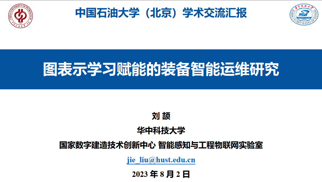 刘颉老师做了题为“图表示学习赋能的装备智能运维研究”的学术报告,从研究内容、基本理论、创新思路等方面详细讲解,介绍了基于图神经网络技术的“新一代人工智能故障诊断理论”,以及智能算法推进设备服役性能监测及故障智能诊断的成功案例,并与参会师生进行了热烈的研讨和交流,有效激发了参会师生对“新一代人工智能故障诊断理论”的兴趣和研究热情,对我院布局和推动油气装备智能设计与制造的教学和科研工作起到了推动作用。