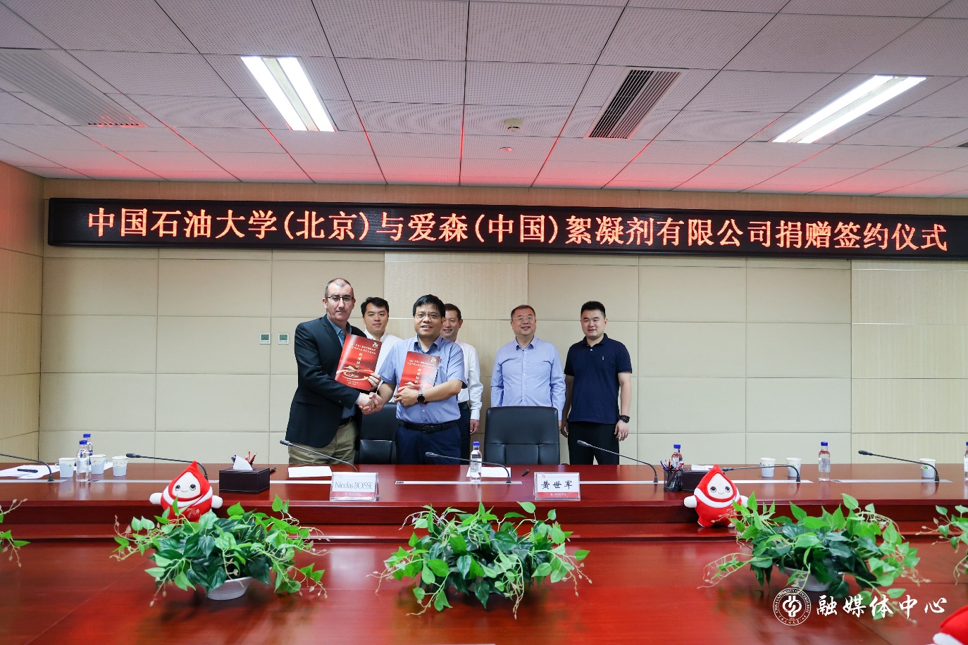 9月25日上午,爱森(中国)絮凝剂有限公司奖学金捐赠仪式与北京云道智造科技有限公司捐赠仪式在中石大举行。校党委书记王同奇,党政办公室主任黄磊,爱森(中国)絮凝剂有限公司战略发展与供应链总监Nicolas BOISSE、北京云道智造科技有限公司高级副总裁朱子玉、石油工程学院党委书记黄世军、机械与储运工程学院党委书记闫亮亮和北京beat365在线唯一官网教育基金会工作人员参加了此次捐赠仪式。黄磊主持签约仪式。