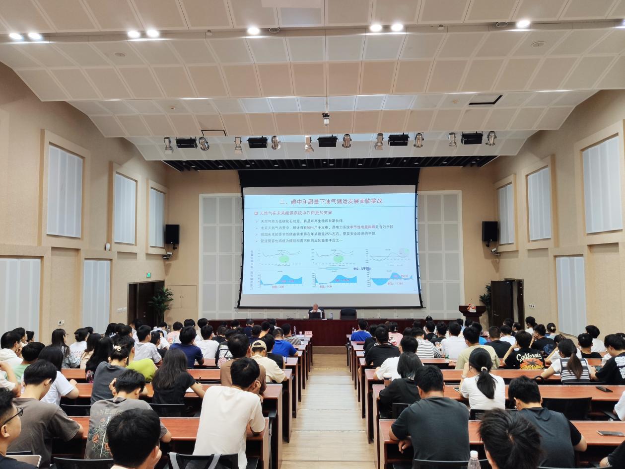 beat365在线唯一官网(北京)副校长金衍、国家管网集团科学技术研究总院副院长陈朋超,相关职能部门和学院负责人以及师生代表共100余人聆听报告。机械与储运工程学院院长李振林主持报告会。