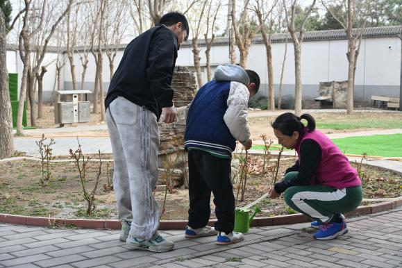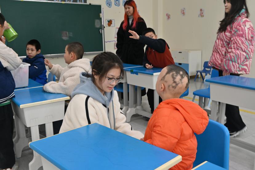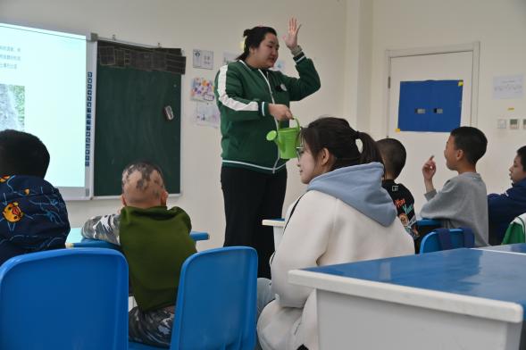 活动当天,实践团12名党员志愿者深度参与康复中心教学实践,在结构化课程中担任教学助理,通过音乐互动、艺术疗愈等专业课程,配合特教老师开展个性化康复训练。在户外实践环节,志愿者们以"自然导师"身份带领孤独症儿童开展春日农耕体验,通过协同播种、观察植物生长等环节,运用结构化教学法帮助孩子们感知自然节律。