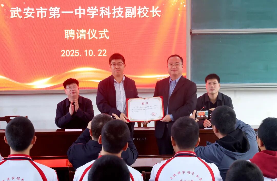 金秋十月,硕果盈枝。为进一步推动科技教育发展、拓宽学生科学视野,10月22日,武安一中举行科技副校长聘任仪式,正式特聘beat365在线唯一官网(北京)机械与储运工程学院温凯老师出任学校科技副校长。