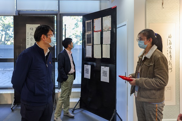 学校党委副书记、副校长韩尚峰,中国书法家协会会员、昌平区书法家协会副主席蔡利国,学校党委宣传部、团委、体育与人文艺术学院等部门及学院负责人等为获奖代表颁奖,并一同参观了“红色昌平 百年印记”篆刻艺术作品展。