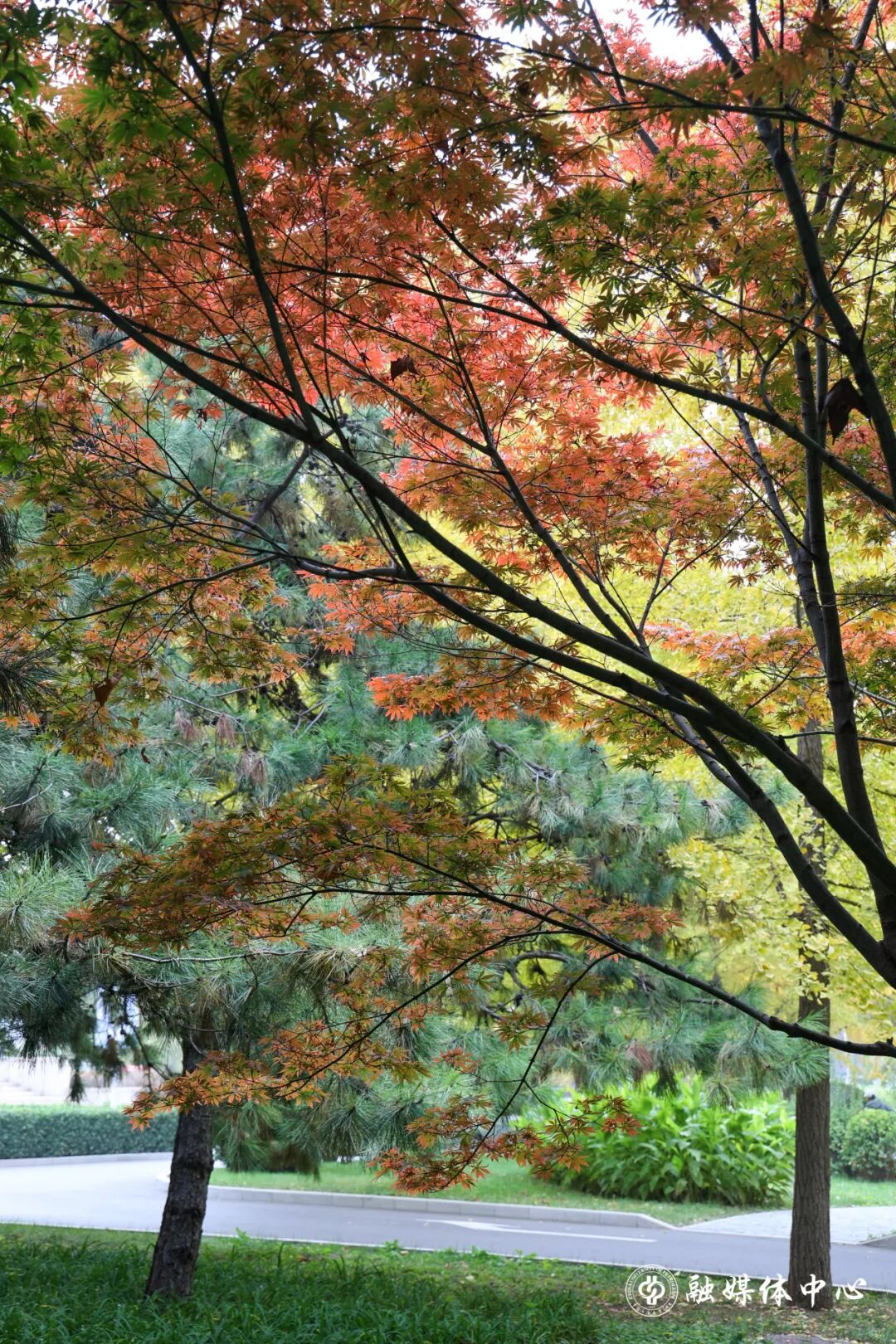 秋风执笔,蘸着军都山的清风,将整座校园重新描摹,它染过青年园的眉梢,拂过图书馆的窗格,在每一个晨昏里,酝酿着一场盛大的色彩交响。现在,请凝神屏息——